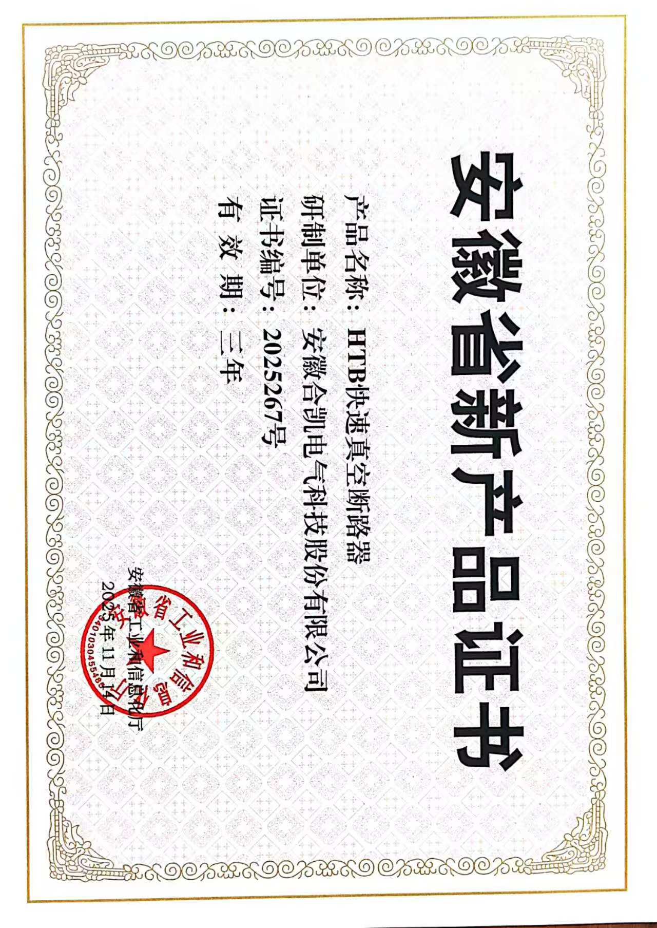 近日,350vip浦京电气自主设计研发的2款新产品被安徽省工业和信息化厅评为“安徽省新产品”。其中一款HTB快速真空断路器,采用涡流斥力技术以及电容温度精确调控技术,实现了断路器的稳定可靠分合闸。