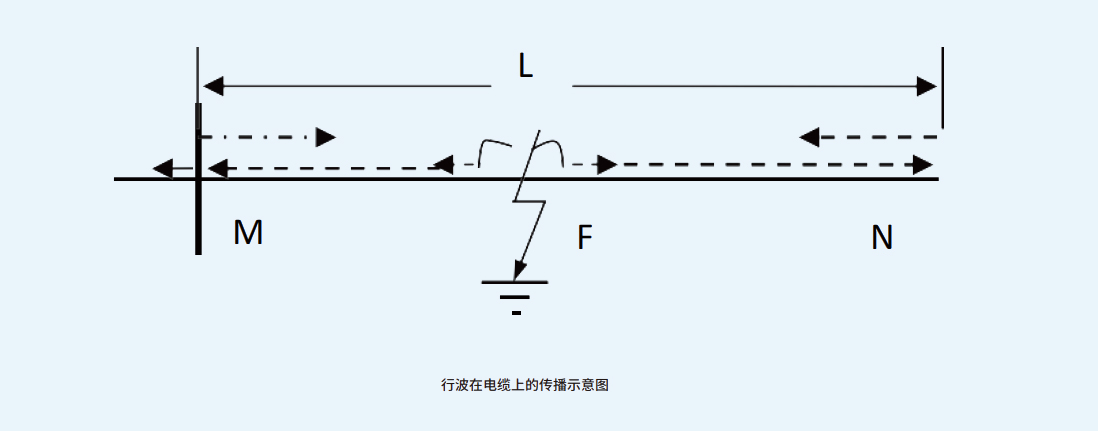 线路上发生瞬时性故障时产生运动的电压行波和电流行波与永久性故障相同。行波由故障点向线路两端传播,传播到线路首端或末端(即不连续点)时发生折反射,如图所示。图中,F为瞬时性故障点,M、N分别为线路首、末端,L为线路长度。