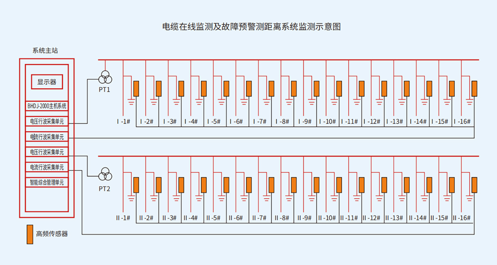 系统针对变电站内各电压等级电缆实行进行在线监测,系统监测方式为站内集中式监测,监测方案如下: