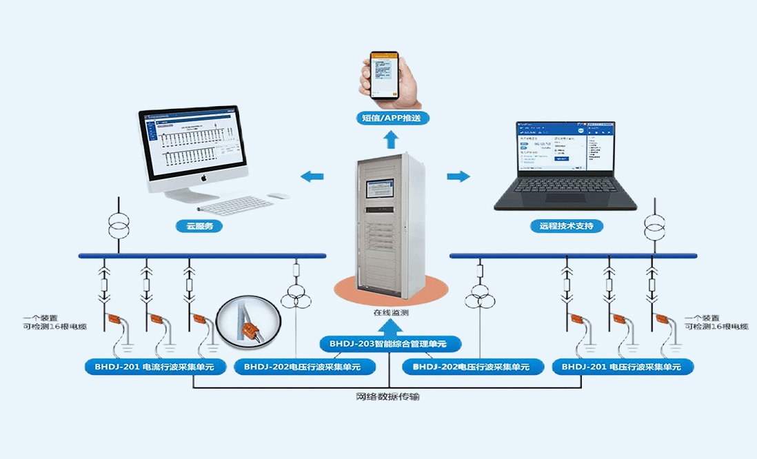 系统通过高速采集装置,采集电力电缆的电流暂态行波和接地绝缘信息,有效地识别电缆老化的暂态过程,提前预测电缆故障发生的位置。