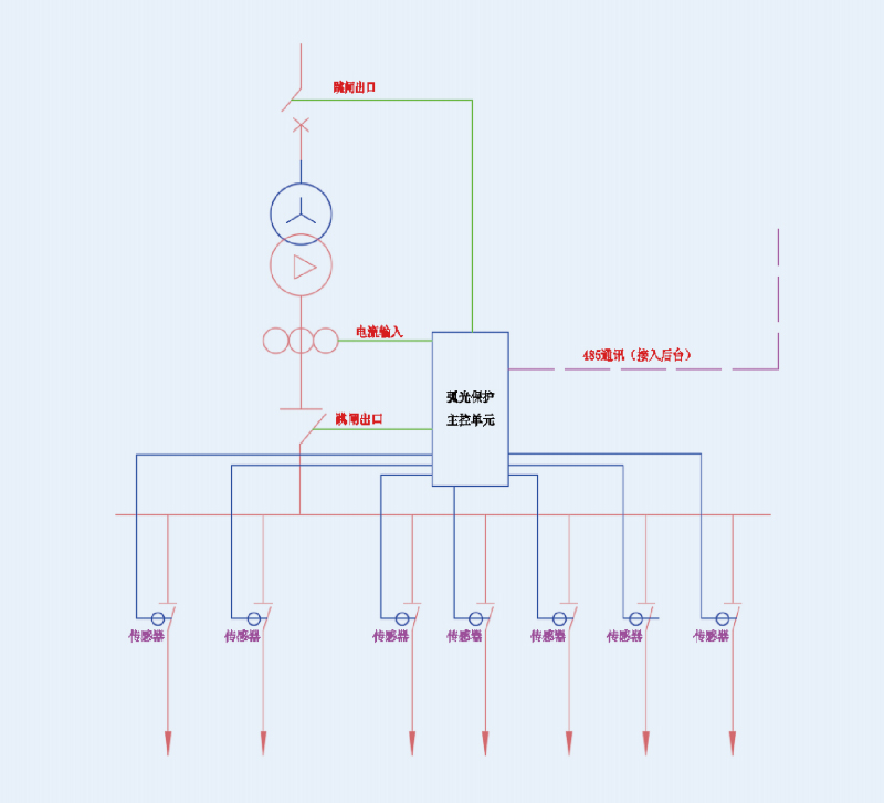 适用于户内3~35kV系统的开关柜中,引入电弧光保护装置,可以捕捉到电气弧光,并快速地切除故障点,保证电力系统的安全稳定运行。